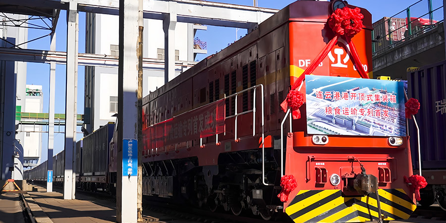 全国首列开顶式集装箱粮食运输专列开行